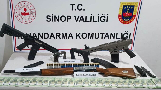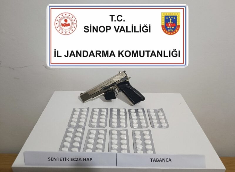 Sinop İl Jandarma Komutanlığınca;Uyuşturucu ve uyarıcı madde satıcıları ile Silah ve Mühimmat Kaçakçıları ile mücadeleye yönelik yapılan çalışmalar kapsamında, 11-12 Aralık 2024 tarihlerinde Boyabat ilçesinde dört şahsa ait ev, eklenti ve araçlarda yapılan aramada,(89) adet sentetik ecza hap, (3) adet av tüfeği (1 adet av tüfeği piyade tüfeğine dönüştürülmüş, tüfeğim içerisine yiv ve set yapılmış), (3) adet ruhsatsız tabanca, (3) adet tabanca şarjörü, (3) adet av tüfeği şarjörü, (22) adet av tüfeği fişeği, 16500 Euro (sahte), (6) adet cep telefonu ve (2) adet dizüstü bilgisayarıele geçirilmiştir. Olay ile ilgili yakalanan (4) şüpheli hakkında adli işlemlere başlanmıştır.