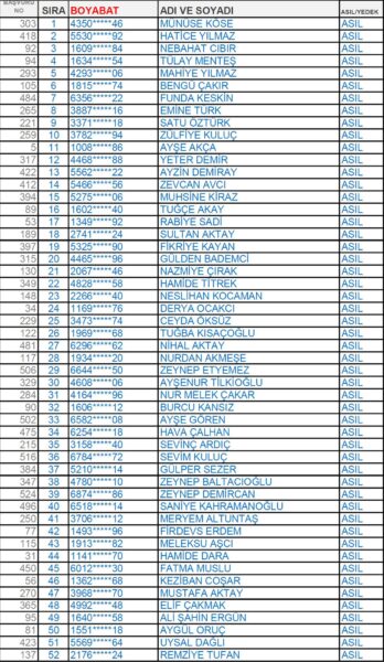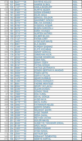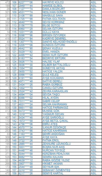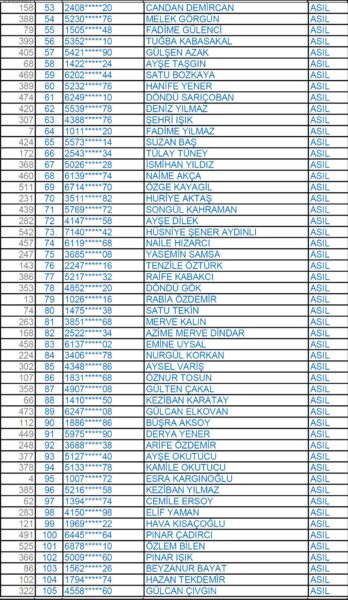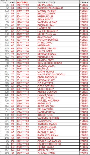 Kura sonucunda belirlenen asil ve yedek kişilerin listesi aşağıdaki şekildedir.