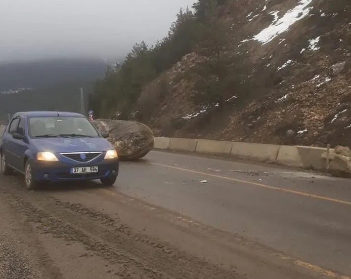 Kastamonu – İnebolu Karayolunda büyük bir facianın eşiğinden dönüldü. Dağdan kopan büyük bir kaya parçası yolun ortasına düştü. O anda yoldan geçenin olmaması ise muhtemel büyük bir facianın önüne geçti.