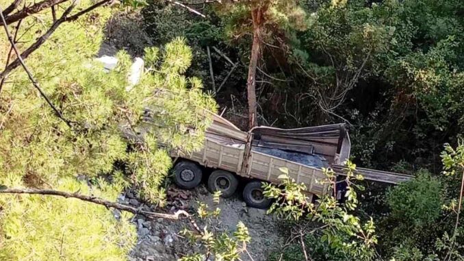 Dün Akşam Saatlerinde Durağan Vezirköprü Tüneli’nin Mevkide Kayganlaşan Yoldan Kayan Kamyon 150 Metre Uçurumdan Aşağı Kayarak İndi.