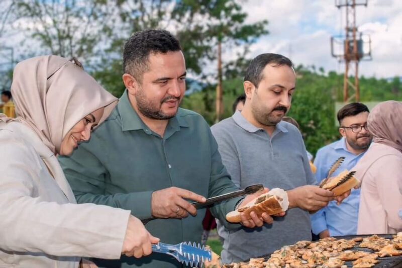Konuşmanın ardından Belediye başkanı Necmettin Ermiş ve kurum amirleri hep birlikte ızgaraların ve kazanların başına geçerek konuklara mantar ikram ettiler.