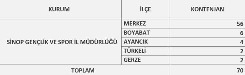 Sinop Çalışma ve İş Kurumu (İŞKUR) ile Sinop Gençlik ve Spor İl Müdürlüğü iş birliğiyle, İşgücü Uyum Programı (IUP) kapsamında 70 kişi istihdam edilecek.