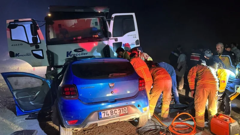 Kastamonu‘nun komşu illerinden Bartın’da meydana gelen feci kaza da kamyon ile otomobil çarpıştı. Kazada yaşları 21 ile 23 arasında değişen 5 genç hayatını kaybetti.