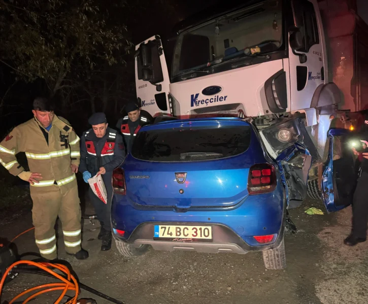 Edindiğimiz bilgilere göre, Bartın’ın İnkumu yolu Boğaz mevkisinde 44 yaşındaki Ümit Kömeç’in kullandığı 74 DH 890 plakalı kamyon ile 22 yaşındaki Berkan Kaya yönetimindeki 74 BC 310 plakalı otomobil çarpıştı.