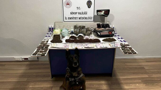 Sinop İl Emniyet Müdürlüğü Narkotik Suçlarla Mücadele Şube Müdürlüğü, Gerze İlçe Emniyet Müdürlüğü ve Sahil Güvenlik Karadeniz Bölge Komutanlığı ekiplerince ortaklaşa yapılan operasyonda, Gerze’de bulunan bir ikamette uyuşturucu madde imal ve ticaretinde bulunan şahıslara yönelik yapılan ikamet aramalarında, 928,92 gr Sentetik Kannabionid Bonzai Maddesi, 567 39 gr. Uyuşturucu madde yapımında kullanılan madde, 24 Adet Uyuşturucu madde yapımında kullanılan malzeme ayrıca uyuşturucu madde ticaretinden elde edilen, 32,5 gr Altın ve 35,345 TL suç geliri ele geçirildi.Olayla ilgili 5 şüpheli şahıs gözaltına alındı.