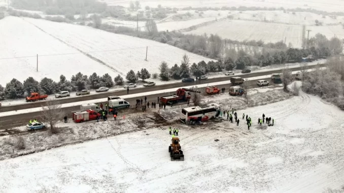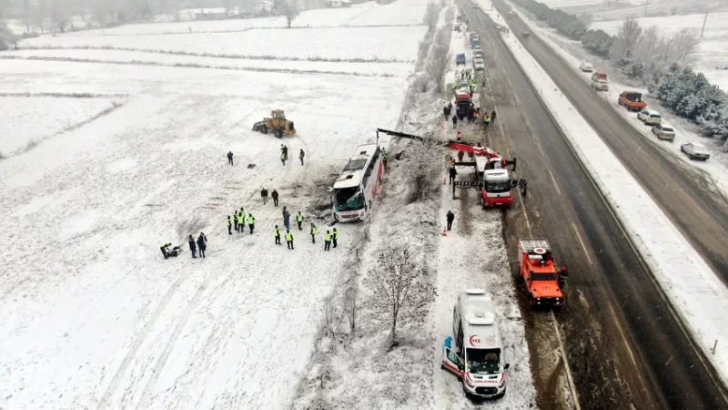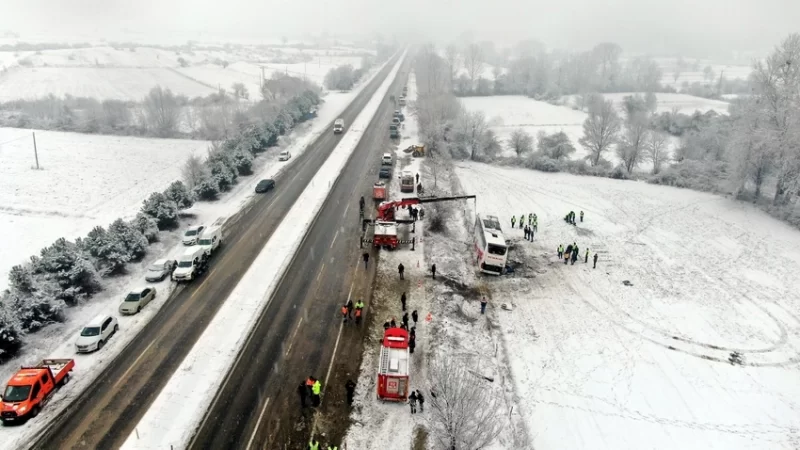 Kastamonu’da 6 kişinin öldüğü, 3’ü ağır 33 kişinin yaralandığı otobüs kazası dron ile görüntülendi.