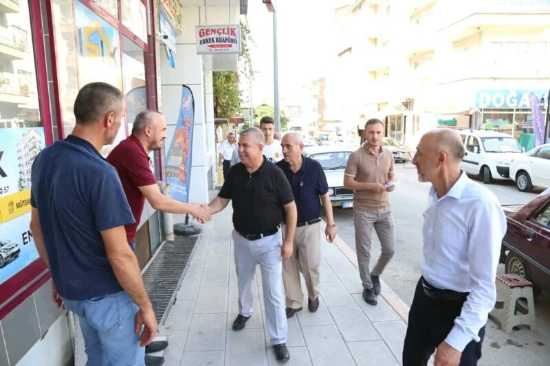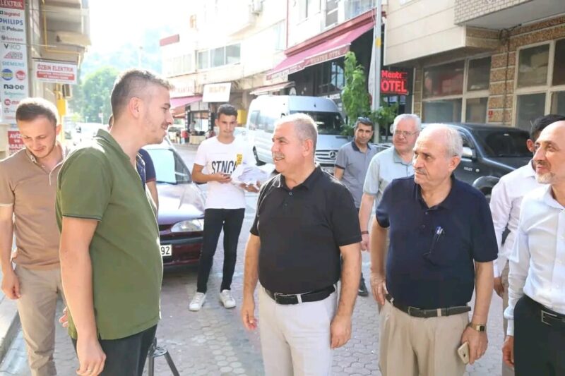 İlçe Başkanı Mustafa YAYLAOĞLU, İl ve Belediye Meclis Üyeleri,Teşkilat ve Gençlik Kolları ile birlikte Cumhurbaşkanı Recep Tayyip Erdoğan tarafından yazılan mektubunu esnaf ve köy ziyaretinde bulunarak selamlarını ilettiler.