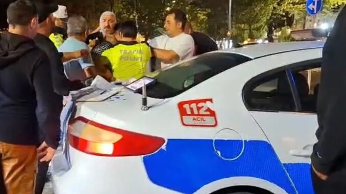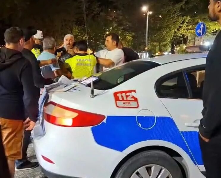 Olay, gece saatlerinde Uğur Mumcu Meydanı’nda meydana geldi. Trafik Şube Müdürlüğü ekipleri, meydanda araç ve sürücülere yönelik uygulama yaparken, kimliği henüz açıklanmayan bir kişinin saldırısına hedef oldu.
