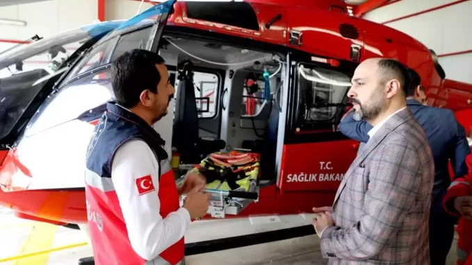 Sağlık Bakanlığı Helikopter Hava Ambulans Merkezini ziyaret eden Samsun İl Sağlık Müdürü Dr. Öğr. Üyesi Muhammet Ali Oruç, “Yeni hava ambulansı yakıt ikmali yapmadan 450 kilometre mesafeye kadar hasta/yaralı naklini gerçekleştirebiliyor” dedi.