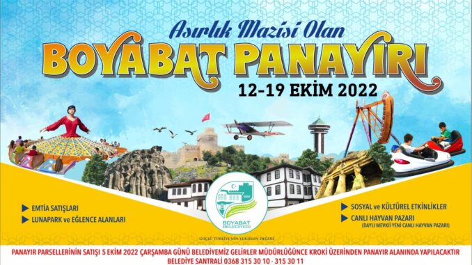 Asırlık mazisi olan “Geleneksel Boyabat Panayırı” için geri sayım başladı. 12-19 Ekim tarihlerinde buluşmak üzere tüm hemşehrilerimizi, gurbetçilerimizi ve misafirlerimizi bekliyoruz.