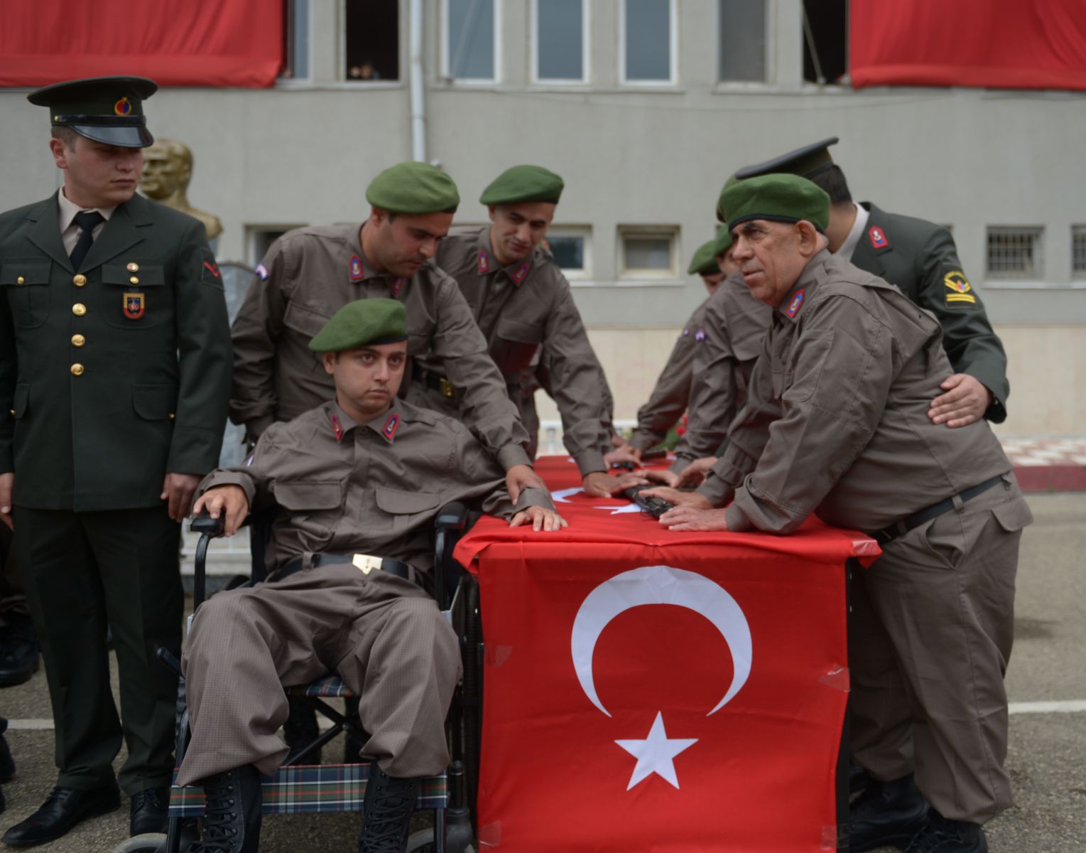İl Jandarma Komutanlığında düzenlenen temsili askerlik uygulamasına Devlet Erkanının yanı sıra, İl Jandarma Komutanı Albay Halil Altınbaş ile diğer ilgililer ve engellilerin yakınları katıldı.