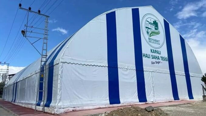 Erenlik Mevkiinde yapımı tamamlanan ve hem çocukların hem gençlerin hem de her yaştan sporverlerin sportif, fiziksel ve çok yönlü gelişimlerini desteklemek amacıyla Boyabat’a kazandırılan Kapalı Halısaha Tesisi 25 Temmuz Pazartesi (Bugün) itibariyle Boyabat halkının hizmetine açılıyor.