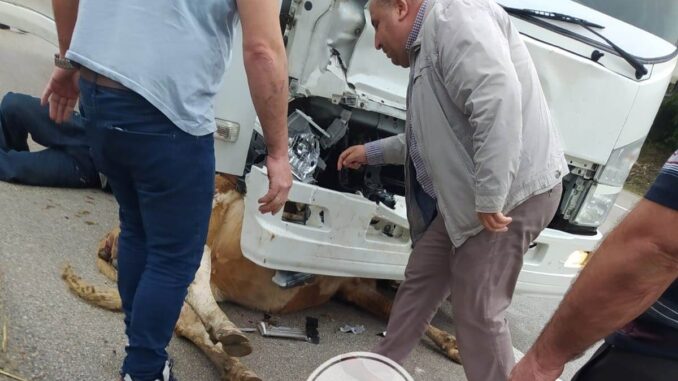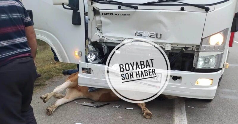 Bugün 08.10.2022 Cumartesi ögleden sonra Boyabat Durağan karayolunda Boyabat’a gelmekte olan 05…… kamyonet ineği altına alarak 100 metre sürükledi.