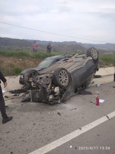 Bayram tatili için Giresun’a girmekte olan olduğu öğrenilen ve seyir halinde olan aracın önüne köpek atlaması sonucu araç şoförünün direksiyon hakimiyetini kaybetmesiyle birlikte araç takla attı.