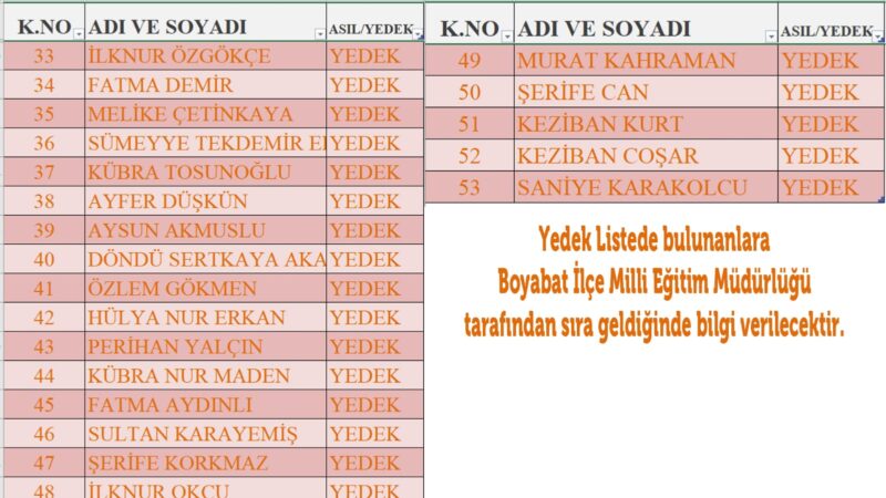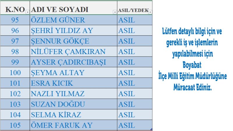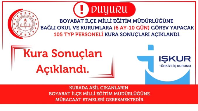 ⚠️Kurada Asil olarak çıkanların Belgelerini hazırlamak üzere Boyabat İlçe Milli Eğitim Müdürlüğüne müracaat etmeleri gerekmektedir.