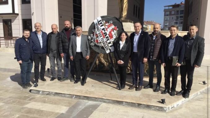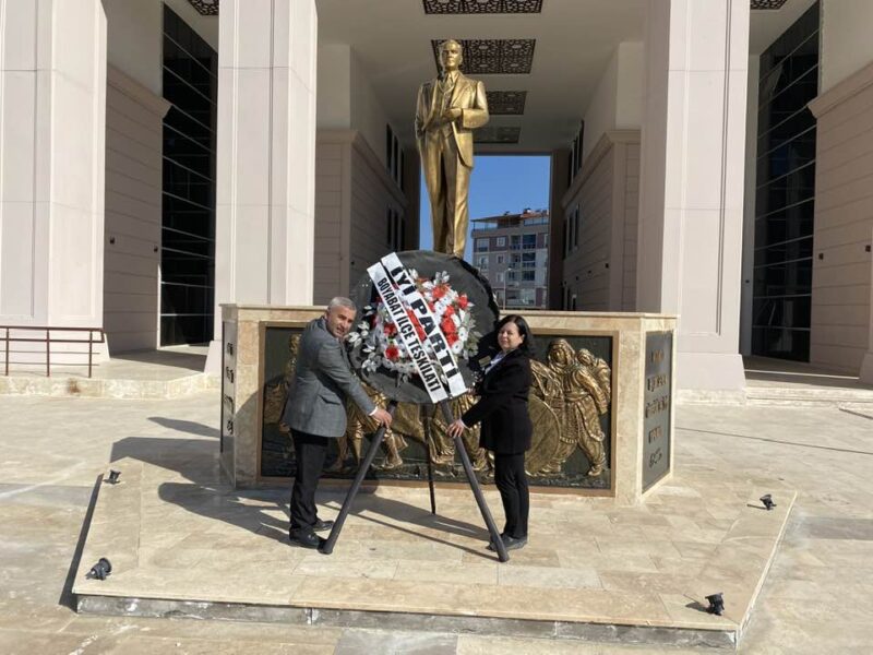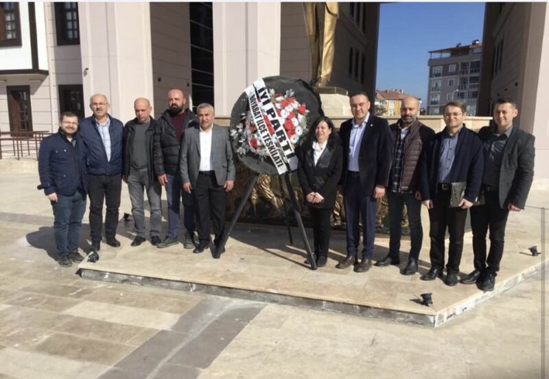 Millet olarak derinden yaralandığımız, üzüldüğümüz ve yas tuttuğumuz bu dönemde partimizin 5. Kuruluş yıldönümü olan bu günde bütün il ve ilçelerimizde Atatürk anıtına çelenk sunumu yapılmıştır. Bizde ilçemizde çelenk sunma törenimizi yaptık. Maden şehitlerimize Allah’ tan rahmet diliyorum“dedi.