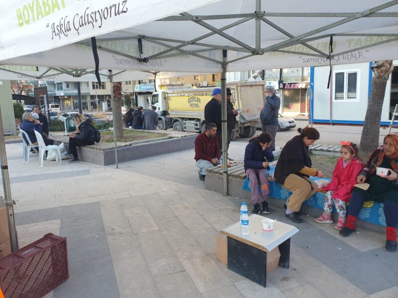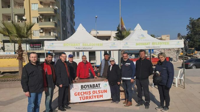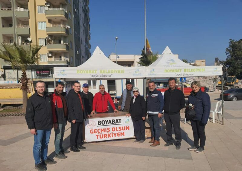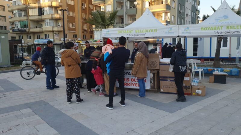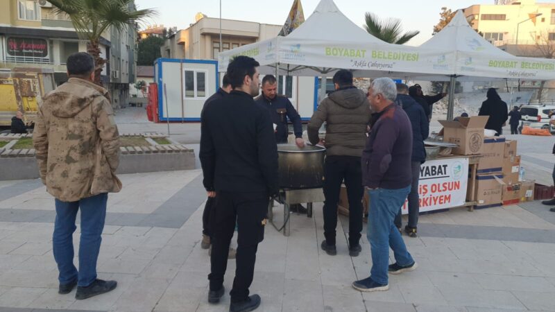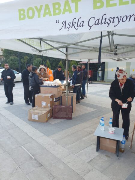 Boyabat AK Parti İlçe Başkanı Kadir Çok ; “Boyabat Kaymakamımız Sn.Enver YILMAZ,İl Genel,Belediye Meclis Üyelerimiz ve Teşkilat Üyelerimiz, yaralarının sarılmaya ve göçük altında hâlâ büyük umutlarla bekleyişin sürdüğü depremzede ailelerimizin sofralarına aş oldu, ekmek oldu” dedi.