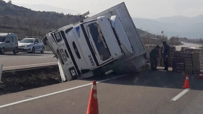 Boyabat istikametinden Sinop istikametine giden kamyon bugün (26.01.2023.perşembe) Maruf köyü mevkide şarampole yan yattı. kazada can kaybı ve yaralanma olmazken kamyonda maddi hasar meydana geldiği bildirildi. polis olayla ilgili soruşturma başlattı.