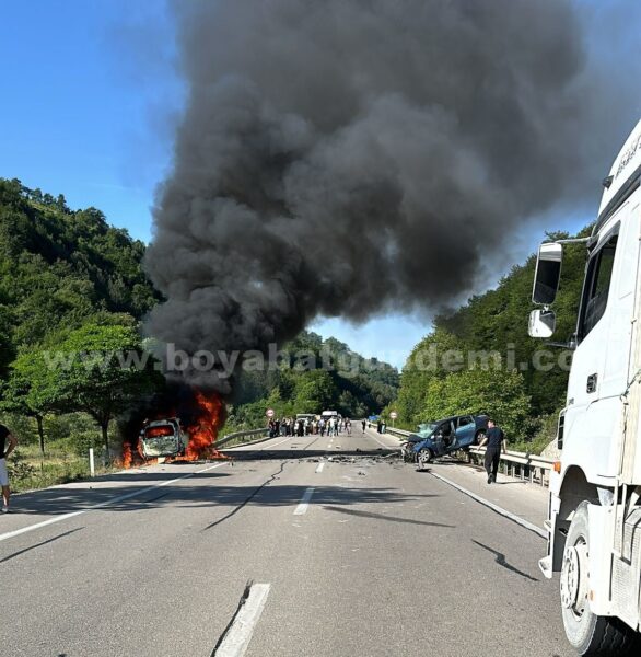 Boyabat Sinop Yolu Dere Cuma Mevkide Sabah Saat 08 .00 Sıraların İki Otomobilin Çarpışması Sonucunda , Bir Araçta Yangın Çıktı. Kazada İlk Belirlemelere Göre 4 Kişi Hayatını Kaybettiği, 2 Kişinin de Ağır Yaralı Olduğu Bildirildi. Yayan Aracın Hizmet Aracı Olduğu Görevli Doktorları Sinop’tan Boyabat’ta Getirdiği Bildirildi.