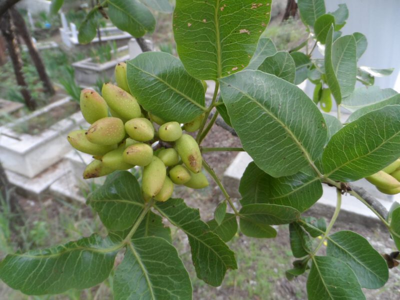 Boyabat’ın antep fıstıkları. Geçmiş yıllarda Sakız Dağı’nda antep fıstığı aşılamaları olmuştu. O çalışmaların mezarlıktaki sonuçları bunlar olmalı. Boyabat Tarım İlçe Müdürlüğü yeniden bir antep fıstığı projesi yapıyor.
