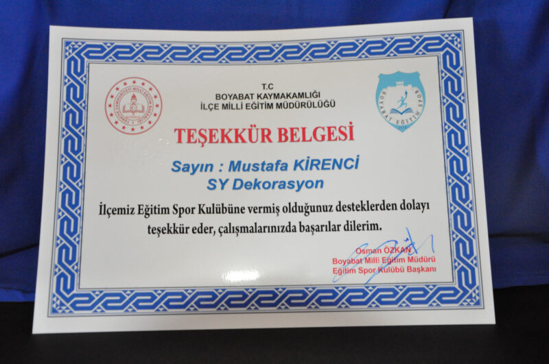 Boyabat Eğitim Spor kulüp başkanı İlçe Milli Eğitim Müdürümüz Sayın Osman ÖZKAN ve kulüp genel koordinatörü Erdoğan ACAR kulübümüze desteklerinden dolayı sponsorumuza teşekkürlerini sundular.