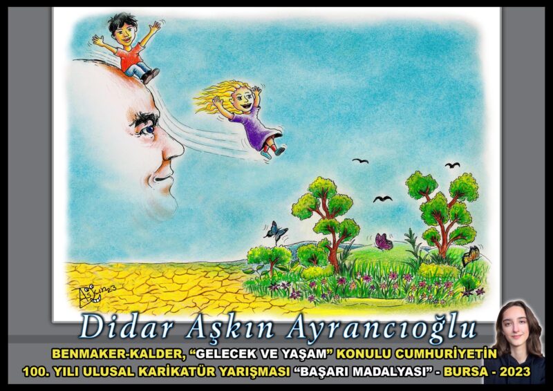 Aşkın Ayrancıoğlu ; Cumhuriyet’in 100. Yılı anısına Bursa’da BenMaker şirketi ve Kalder (Kalite Derneği) iş birliğinde düzenlenen “Gelecek ve Yaşam” konulu ulusal karikatür yarışmasında Başarı Ödül Kupası kazanan öğrencilerim Zeynep Türkmen, Sudenur Küçükbaş ve Furkan Aytur’u… Başarı Ödül Madalyası kazanan kızım Didar Aşkın Ayrancıoğlu, öğrencilerim Asel Ada Olca, Sudem Duran, Deniz Nur Aktaş ve Zeliha Nur Maviş’i kutlar, başarılarının devamını dilerim” dedi.