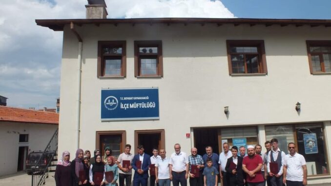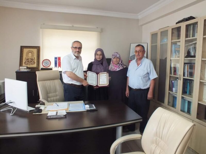 Merkez Kur’an Kursu öğrencileri Bekir ÇAKIRCI, Emrullah KESKİN, Fatih KEÇE, Hüseyin MAVİŞ, İlker Yasin GÖKMEN, İsmail TAMAR ve Mustafa KARADENİZ, Nesibe Hatun Kur’an Kursu öğrencileri Hasret UĞUR, Kadriye Nur ÖZASLAN ve Perihan AŞCI, Mehmet Albayrak Hafız İHO Erkek Kur’an Kursu öğrencisi Ali Rıza KICIK ile Mehmet Albayrak Hafız İHO Kız Kur’an Kursu öğrencisi Hayrunnisa AKMAN’a hafızlık belgeleri İlçe Müftüsü Mehmet EVİRGENTÜRK tarafından takdim edildi.