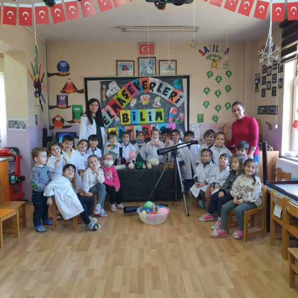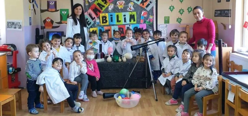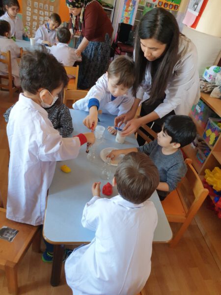 Okulumuz 125.Yıl Atatürk Anaokulu 4 Yaş A Sınıfı veli katılımı etkinlikleri kapsamında Fen Bilgisi Öğretmeni velimiz Esra KÖROĞLU’nun katılımıyla Bilim ve Matematik etkinliği gerçekleştirdiler. Miniklerimiz kendi önlüklerini giyerek deney yaptılar.