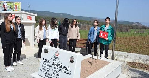 Boyabat Mehmet Akif Ersoy Anadolu Lisesi öğrencileri, Boyabat İlçe Milli Eğitim Müdürlüğü tarafından düzenlenen “Bir Projem Var” etkinliği çerçevesinde, “Şehidimin Bayrağı” projesi kapsamında, 2015 yılında Hakkari’nin Yüksekova ilçesinde gerçekleştirilen operasyonda şehit düşen Piyade Uzman Çavuş Sadık Aparangil’in mezarını ziyaret etti.