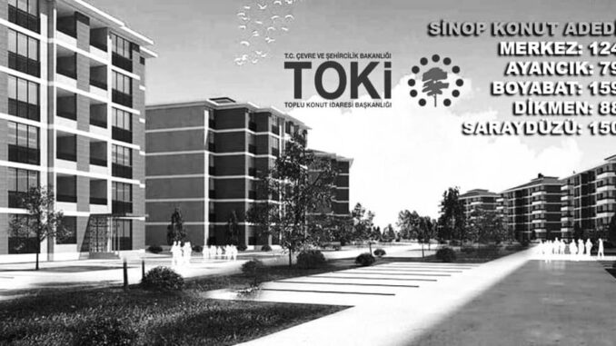 Cumhurbaşkanı Recep Tayyip Erdoğan tarafından açıklanan yüzyılın konut projesi kapsamında Sinop ve ilçelerimize toplamda 600 konut TOKİ tarafından inşa edilecek.