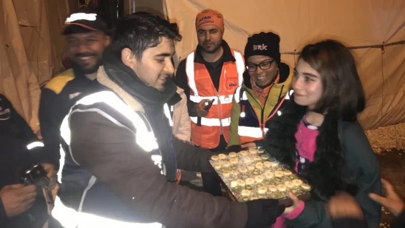 Kahramanmaraş’ın Pazarcık ilçesindeki depremin yıkıntıları arasında 14 yaşına giren Elif’e, polis ve AFAD ekipleri doğum günü sürprizi yaptı.