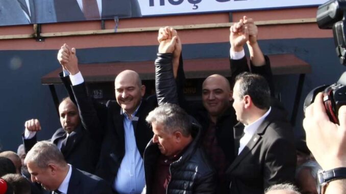 İçişleri Bakanı Süleyman Soylu, Sinop Gerze’de İlçe Danışma Meclisi Toplantısı’na katıldı. Soylu’nun konuşmasının ardından, Gerze DEVA Partisi İlçe Başkanı Mehmet Emin Gülsevin ve yönetim kurulu ve yüz üyesiyle birlikte partiden istifa ederek, AK Parti’ye üye olduklarını duyurdu.