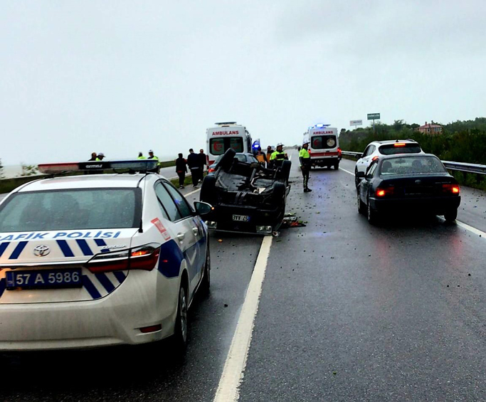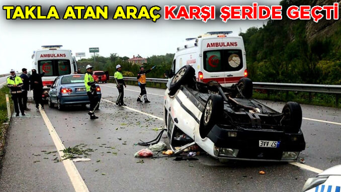 Olay bugün saat 17.00 sıralarında Dikmen sapağında meydana geldi. Edinilen bilgiye göre, Ş.Ü. kontrolündeki 57 AAE ….. plakalı araç, Samsun istikametinden Sinop istikametine hareket halindeyken (Dikmen sapağında) direksiyon hakimiyetini kaybederek karşı şeride geçti. Olay yerine hemen sağlık ekipleri ve polis ekipleri intikal ederken kazanın etkisiyle takla atan araçta bulunan sürücü Ş.Ü. ve Z. K.’ nin hafif yaralandığı öğrenildi. Yaralıların sağlık durumlarının iyi olduğu kaydedilirken olayla ilgili inceleme devam ediyor.