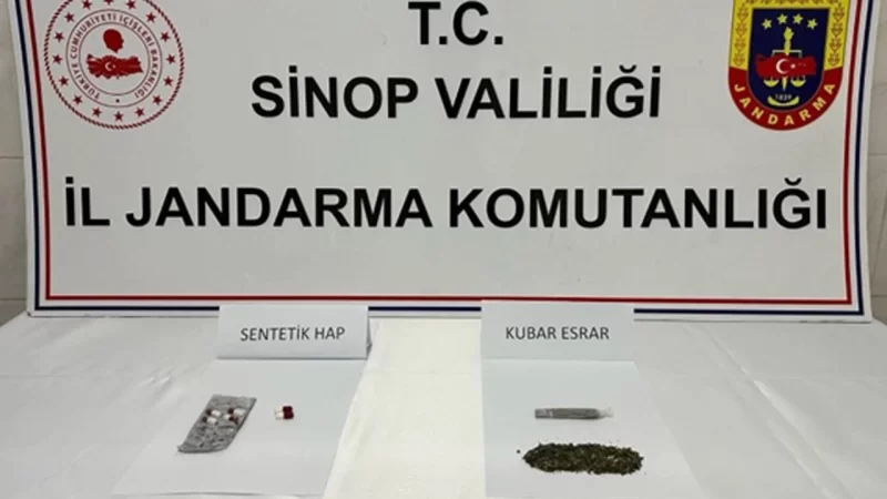 Sinop’ta durumundan şüphe edilen araçta ve sürücüsü üzerinde yapılan aramada 10 gr. kubar esrar ve 6 adet sentetik hap ele geçirilmiş olup, 2 şüpheli şahıs yakalanarak haklarında adli işlemler başlatıldı.