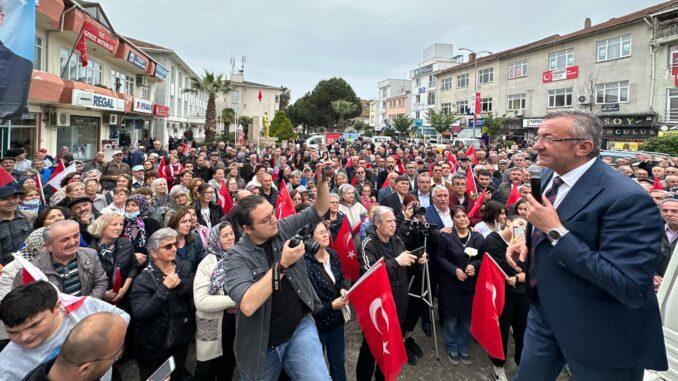 “Gerzelilere şunu söylüyoruz: Tabelalardan T.C. ibaresini kaldırandan, andımızı yasaklayandan, Kandil’de PKK ile Oslo’da PKK terör örgütüyle pazarlık yapandan milliyetçi olmaz. PKK terör örgütü tarafından suikast uğrayan tek lider Kemal Kılıçdaroğlu ’dur. Sinan Ateş gerçek bir ülkücü gerçek bir milliyetçiydi. Sinan Ateş’i katledenler halen daha devlet şemsiyesi altında. İkinci oy ile ilgili konuşacak olursak Erdoğan alacağı maksimum oyu aldı. Bizim yaptığımız çalışmalarla birlikte millet gerçeği görmeye başladı. Anadolu’yu adım adam gezen biri olarak vatandaşlara bunları anlatıyoruz. CHP’ye milliyetçilik üzerinden atılan bu çamurun tutmadığını Türkiye’ye bu kısa sürede anlatmak zorundayız. Bunu üşenmeden tek tek duyurmamız gerekiyor. Ben seçimle ilgili umudumu koruyorum, Türk Bayrağını kabul etmeyen bir insanın tekrar Cumhurbaşkanı yapılacağına ihtimal vermiyorum. Partiler gelir geçer ancak al bayrağımız sonsuza kadar dalgalanacaktır. Türkiye’nin başına haram yemeyen, kimsenin hakkını yemeyen uzlaştırıcı bir insanın gelmesi lazım. Türkiye’de şuan hiçbirimizin can mal namus güvenliğimiz yok. Esenler’ de, Bağcılar’ da tanıdıklarınız var arayın sorun, çocuğunuzu akşam markete gönderebiliyor musunuz diye sorun. İstanbul’da yaşanan şeylerin aynısı seçimden sonra yanlış bir tercihte 2 sene sonra Gerze’ de de yaşanacak. Çocuklarımızı Suriyeliler ‘den markete gönderemeyeceğiz. 10 milyon mülteci sayısı 20 milyona çıkacak. Sandık güvenliği çok önemli, Gerze’ de böyle bir sandık güvenliği durumu olduğunu düşünmüyorum.