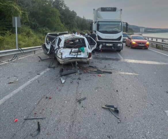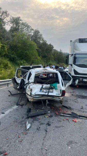 Edinilen bilgiye göre kontrolden çıkan otomobil bariyerle çarpıp takla atarak karşı şeride geçti. Kaza sırasında adeta hurdaya dönen otomobilde bulunan 2’si çocuk, 5 kişi yaralandı.