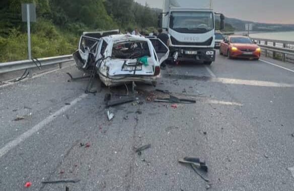 Edinilen bilgiye göre kontrolden çıkan otomobil bariyerle çarpıp takla atarak karşı şeride geçti. Kaza sırasında adeta hurdaya dönen otomobilde bulunan 2’si çocuk, 5 kişi yaralandı.