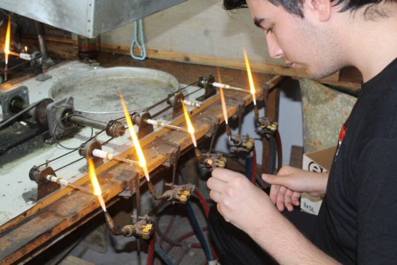 Üretimde kullandığı makinaları da kendi yapan Bahri Usta, gelen siparişe yetişmek için aile fertlerinin yardımını alarak üretimi hızlandırdı. Camdan çay, tatlı, dondurma kaşığı gibi ürünler imal ederek yurt içine ve yurt dışına satışını gerçekleştiren Aslan, Rusya, Almanya, Fransa ve Amerika gibi ülkelere ürettiği cam kaşıkları ihraç ediyor. Günde 14 kaşık üreterek başlayan Aslan, oğlu Kadir Aslan’ la birlikte bu sayıyı 3 bine çıkardı. Asıl mesleği elektrikçi olan ama babası Bahri Aslan’ ın mesleğini sürdürdüğünü belirten Kadir Aslan, babasıyla birlikte daha önce Konya’ da cam fabrikasında çalıştığını, Gerze’ ye yerleştikten sonra babasıyla birlikte cam kaşık üretmeye başladığını belirtti.