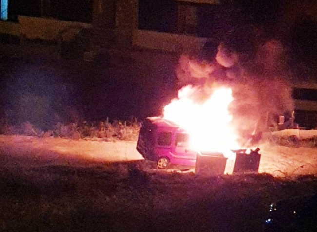 Sinop’ta gece saatlerinde hafif ticari araç alev alev yanarak kullanılamaz hale geldi.