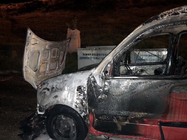 Olay saat 00.00 sıralarında Ada Mahallesi üzerinde meydana geldi. Edinilen bilgiye göre 57 AE 037 plakalı hafif ticari araçtan dumanlar yükselmeye başladı. Araçta bulunan G.T. direksiyondan indiği sırada bir anda alevler yükseldi. Bölgeye gelen polis ekipleri çevre güvenliği alırken Sinop Belediyesi İtfaiye ekipleri ise çıkan alevlere müdahale ederek yangını kısa sürede kontrol altına aldı. Çıkan yangında can kaybı bulunmazken araç kullanılamaz hale geldi. Çekici yardımıyla araç bulunduğu yerden kaldırıldı.