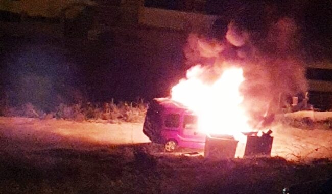 Sinop’ta gece saatlerinde hafif ticari araç alev alev yanarak kullanılamaz hale geldi.
