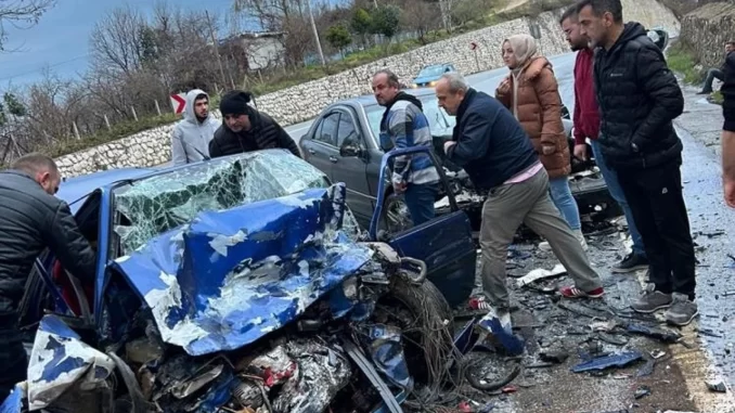 Düzce’nin Akçakoca ilçesinde iki otomobil kafa kafaya çarpıştı. Kazada 1 kişi hayatını kaybetti, 3 kişi yaralandı.