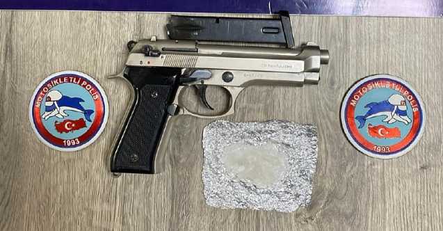 Uygulamada, iki şahıs üzerinde ve araçlarında yapılan aramalarda iki ruhsatsız tabanca ile 6,90 gram metamfetamin ele geçirildi.