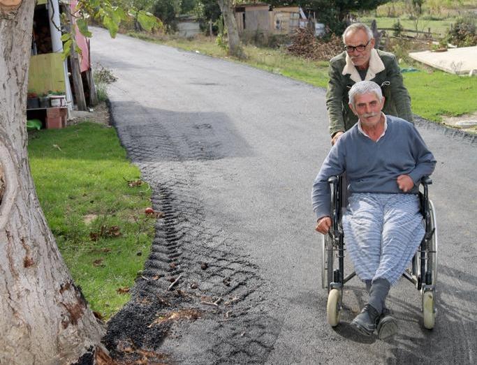 Sinop İl Özel İdaresi, evine ulaşmakta zorluk yaşayan bedensel engelli Duran Karasu ve engelli kızı Nuran Karasu’nun kapısının önüne kadar asfalt serimi gerçekleştirdi.