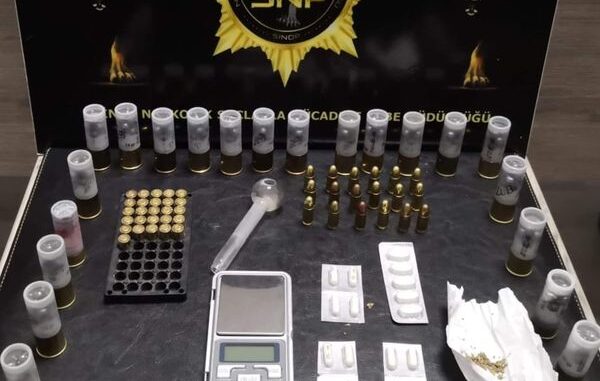 İl Emniyet Müdürlüğü tarafından bir iş yerinde yapılan aramada; 17 adet Sentetik Ecza Maddesi, 0,83 gr. Esrar Maddesi, 1 adet Payp, 1 adet Hassas Terazi, 44 adet Mermi, 21 adet Fişek ele geçirildi. Söz konusu olayla ilgili 1 şüpheli şahıs hakkında gerekli yasal işlemler başlatıldı.
