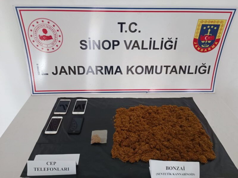 Sinop İl Jandarma Komutanlığı ekipleri, uyuşturucu madde satıcılarına yönelik yapılan operasyonlar neticesinde, Kastamonu-Boyabat karayolu üzerinde yapılan uygulamada durdurulan şüpheli şahısların üzerlerinde ve çantalarında yapılan aramada; 1012 gram bonzai ve 4 adet Cep Telefonu ele geçirildi.