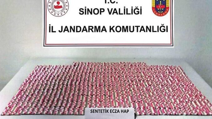 Sinop İl Jandarma Komutanlığı Kaçakçılık ve Organize Suçlarla Mücadele (KOM) ekiplerince Boyabat’ta U.Ö. (29) isimli şahsın, uyuşturucu sevkiyatı yaptığı istihbaratı üzerine ekipler harekete geçti. Ekipler taşıdığı kolide inceleme yaptı. Yapılan aramada koli içerisine saklanmış 3 bin 135 adet sentetik ecza hap ele geçirildi.