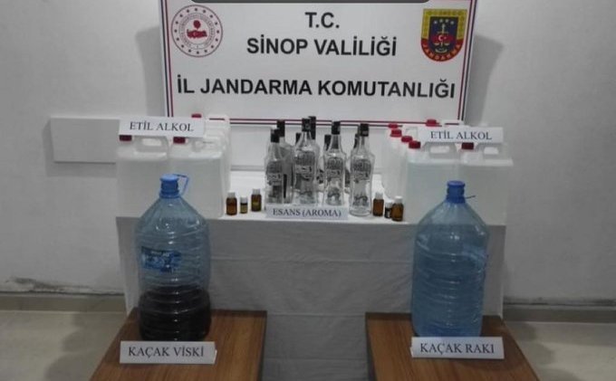Ayancık ilçesinde yapılan operasyon neticesinde (28) litre etil alkol, (10) litre kaçak rakı, (5) litre kaçak viski, (45) ml. alkol esansı ve alkol yapımında kullanılan çok sayıda aparat ele geçirilmiş olup; olayla ilgili (1) şüpheli yakalanarak adli işlemlere başlanılmıştır.