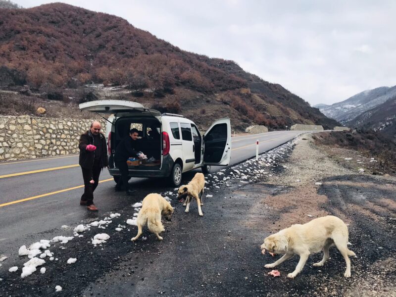 #Karayollari olarak bu kış gününde yollarımızdaki hayvanları da unutmadık. #kalebaği ve #yildiz kasaplarına teşekkürler. Kemal Yılmaz Eren Yılmaz – Emre Yılmaz