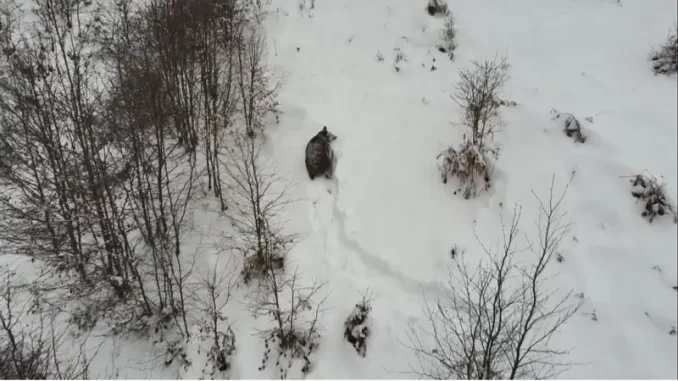 Hava sıcaklıklarının mevsim normallerinin üzerinde seyretmesi yaban hayatını da olumsuz etkiliyor. Kış uykusuna geçemeyen ayıların doğada dolaşmaya devam etmeleri dron ile kaydedildi.